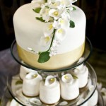 Una tavolata all’aperto con qualche decoro verde come il prato su cui sono posti tavolo e sedie può dare quel tocco di piacevole colore. Torta bianca, cupcakes decorati con un fiore di calla, passatoia dello stesso colore e… gli sposi entrambi in bianco!