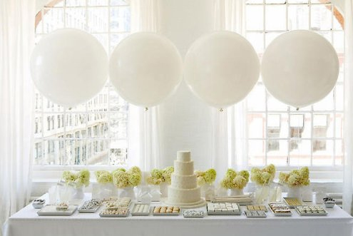 Organizzato in un salone con le pareti bianche, le finestre dello stesso colore, magari a talio tipicamente inglese, con una tovaglia di lino ed un buffet di dolci sormontato da palloncini gonfi e cicciotti è romantico.