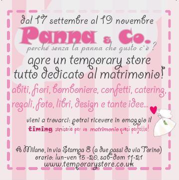 Se siete appena all’inizio, e tra una ricerca e l’altra vi trovate a passare da Milano, potete fare un salto al primo Temporary Store dedicato al matrimonio. Si chiama Panna&Co, è stato inaugurato il 17 settembre e rimarrà aperto fino al 19 novembre.