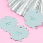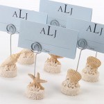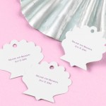 Da utilizzare sia come segnaposto che come bigliettini per le bomboniere le conchiglie di cartoncino, in diversi colori, su cui scrivere il nome dell’invitato da una parte e quello degli sposi e la data di nozze sull’altro.