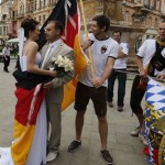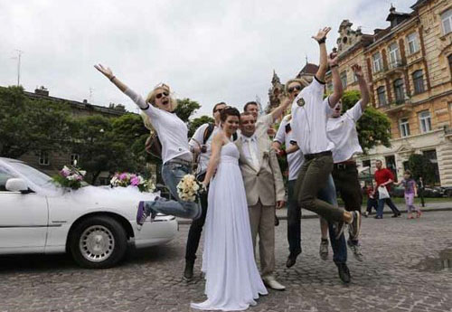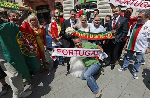 Negli europei, lo dice il nome, si confrontano squadre dell’Europa e abbiamo trovato in rete queste divertenti fotografie con spose e sposi, banbiere e grande desiderio non solo di felicità coniugale, ma anche di vittoria. Non sono moltissime le donne che amano il calcio, ma per quelle che è così, il sentimento è viscerale.