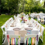 In alternativa piccoli vasi di ceramica bianca possono contenere fiori di campo e selvatici. Per quanto riguarda le sedie vi potete aggiungere dei nastrini colorati per dare tono e colore alla festa.