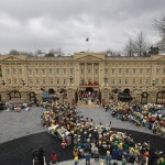 Kate e William, rispettivamente in abito da sposo e da sposa, sono circondati dalla folla accorsa per assistere all’evento. E non manca nemmeno la rappresentazione dell’affacciata al terrazzo reale, con tanto di Regina vestita di giallo ed elegante cappellino. In una sola parola: meraviglioso!