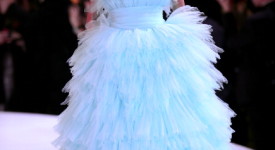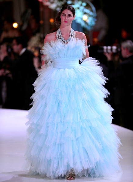 A model displays a creation of Dominican designer Oscar de la Renta during the “Gala Moda Nextel” in Mexico City on March 22, 2013. AFP PHOTO/Alfredo Estrella (Photo credit should read ALFREDO ESTRELLA/AFP/Getty Images)