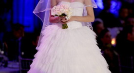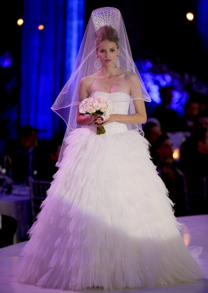 A model displays a creation of Dominican designer Oscar de la Renta during the “Gala Moda Nextel” in Mexico City on March 22, 2013. AFP PHOTO/Alfredo Estrella (Photo credit should read ALFREDO ESTRELLA/AFP/Getty Images)