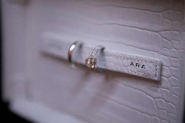 Abbiamo deciso di allontanarci dal tradizionale cuscino utilizzato nei matrimoni occidentali per dar vita a un oggetto unico e prezioso. Un porta fedi personalizzato con i nomi degli sposi, da utilizzare non solo per il giorno del sì, ma soprattutto dopo. Un oggetto quotidiano che potesse fare da svuota tasche, da porta anelli, da piccolo contenitore.