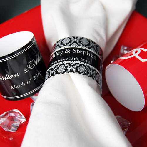 Per le donne fiori, anello e quant’altro. Si sa che con noi e per noi si può usare più fantasia e si hanno più motivi di decorazione a disposizione! Se volete proprio rimanere sul semplice stampate delle fascette di cartoncino con scritto i nomi degli sposi e la data di matrimonio poi utilizzateli per trattenre i tovaglioli.
