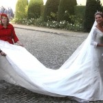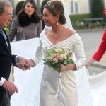 Ovviamente occhi puntati sulla sposa, meglio dire sul suo abito caratterizzato da un lunghissimo strascico sorretto dalle damigelle d’onore.