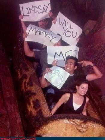 Un suggerimento: per evitare spiacevoli inconvenienti, fate delle prove con i complici in modo da essere sicuri che lo scatto riprenda bene i cartelli. Naturalmente, sarà quasi d’obbligo, poi, provare a pensare se è possibile celebrare le nozze o almeno il ricevimento nel luna park che ha ospitato questa movimentata proposta di matrimonio.