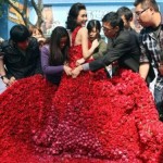 Proposta di matrimonio da record: lui fa realizzare un vestito con 9999 rose rosse