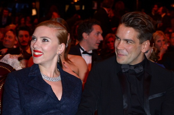PARIS, FRANCE – FEBRUARY 28: Actress Scarlett Johansson and Romain Dauriac sit in the audience before the start of the 39th Cesar Film Awards 2014 at Theatre du Chatelet on February 28, 2014 in Paris, France. (Photo by Dominique Charriau/Getty Images)