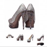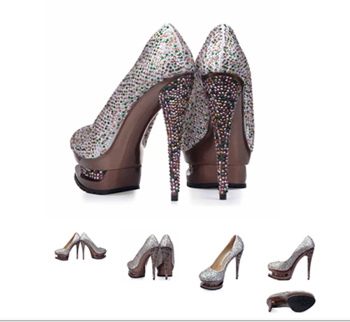 Se mi consentite un commento personale, sono anche meno eleganti e più… diciamo futuristiche! con il tacco doppio e una sorta di zeppa sempre a brillanti.