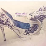 Appena le ho viste ho pensato fossero un’idea veramente unica! Scarpe personalizzate per la sposa. Ve le decorano nello stile che preferite, fatte a mano con la data del matrimonio scritta sopra, ma le fanno anche per gli anniversari.