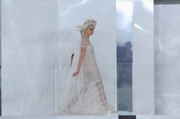 Sono tantissime le idee che si vedono online, su Pinterest ad esempio esistono tante idee per customizzare le proprie All Stars in vista delle nozze. Noi abbiamo scelto una piccola gallery firmata Chanel, nella quale vi mostriamo l’abito da sposa realizzato da Karl Lagerfeld per la collezione a/i 2014 2015, indossato dalla modella di cui sopra e portato in passerella con un paio di sneakers ai piedi.