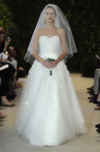 NEW YORK, NY – APRIL 21: A model walks the runway during the Carolina Herrera 2014 Bridal Spring/Summer collection show on April 21, 2013 in New York City. (Photo by Fernanda Calfat/Getty Images)