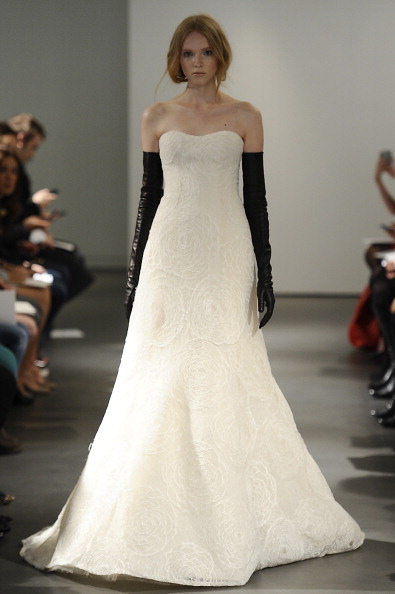 NEW YORK, NY – APRIL 19: A model walks the runway during the Vera Wang 2014 Bridal Spring/Summer collection show on April 19, 2013 in New York City. (Photo by Fernanda Calfat/Getty Images)