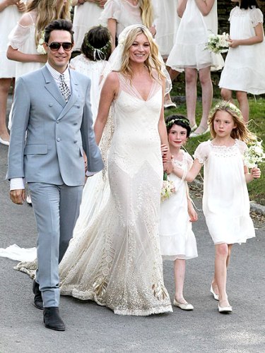 La vetta della classifica è conquistata dalla fashion icon ribelle e anticonvenzionale Kate Moss: nonostante gli eccessi e le esuberanze che da sempre la contraddistinguono, ha scelto di sposarsi in un’atmosfera un po’ bucolica, circondata da bambine deliziose e damigelle in ballerine, sfoggiando un impareggiabile abito vintage color crema e dai discreti bagliori dorati firmato John Galliano, che la rendeva bellissima e dolce come una fata.