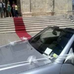 Ma questa volta ad essere presi di mira dai vigili non sono stati gli striscioni ma le auto parcheggiate in divieto di sosta davanti il sagrato. Chissà cosa hanno pensato gli sposi quando hanno visto il verbale sul parabrezza della Mercedes spider degli sposi, addobbata di tutto punto!