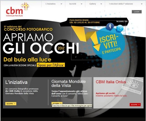 occhi” (on line è possibile leggere ogni informazione su www.apriamogliocchi.org) ed è indetto da CBM Italia Onlus in occasione della Giornata Mondiale della Vista che si terrà l’11 ottobre 2012, un’iniziativa nata per informare l’opinione pubblica sulla condizione delle persone a rischio di cecità nei Paesi in via di sviluppo.
