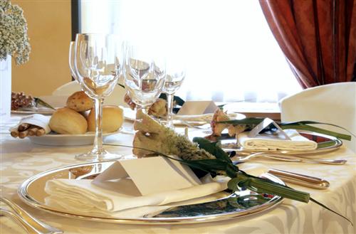 Altri dettagli: solitamente a un pranzo di nozze si preferiscono tavoli tondi da 6, 8, 10 fino ad un massimo di 12 persone in modo da permetter a tutti i commensali di conversare tra di loro. Gli sposi, invece, siedono al centro della sala ove potranno essere visti da tutti. I dettagli in più, come le posate da dessert personalizzate per gli sposi, non possono che arricchire il banchetto.