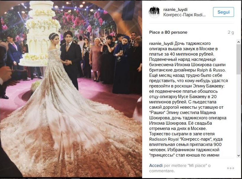 La figlia di un magnate russo si è sposata. Il suo abito da sposa è…