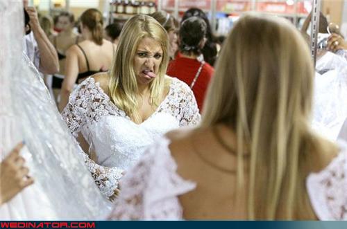Non ci sono dubbi: a questa ragazza proprio non piace l'abito nuziale che ha appena…