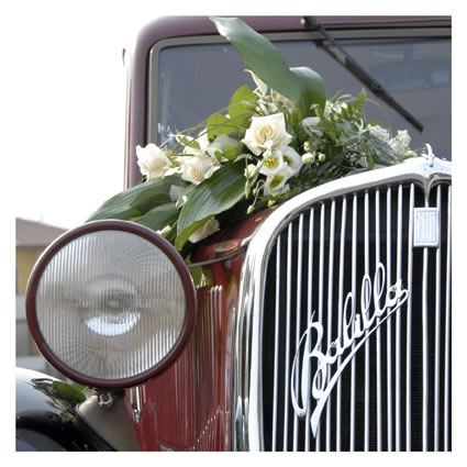 L'automobile con la quale arriva la sposa viene sempre addobbata a festa con fiori stupendi…