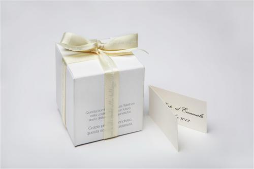 Una frase piena di significato che ben si adatta alla nuova collezione di bomboniere solidali di Telethon diverse per tipologia. Dalla scatolina in plexiglas trasparente a quella in cartoncino, o una semplice pergamena abbinata ad un sacchetto di organza.