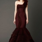 Le nuove tendenze del 2013? Dipende da dove arrivano! Ogni paese ha le sue, non è detto che la moda sia uguale per tutti. Dagli USA arriva una nuova tendenza: il bordeaux. Anche Vera Yang propone un abito di questo colore per la sposa.