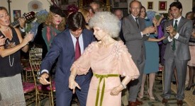 SEVILLA, 05/10/2011: Duchess of Alba Cayetana Fitz-James Stuart, is seen dancing flamenco with bullfighter and ex son in law Francisco Rivera Ordoñez, after getting married to Alfonso DÃez Carabantes, at Duenas Palace in Seville, Spain on October 5th, 2011.( Pool by EFE/ Julio Munoz via Getty Images