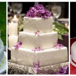 La torta nuziale è bianca, per accordarsi con l’abito della sposa e la maggior parte degli accessori, ma per staccare e anche sposarsi con gli altri dettagli e decorazioni ci sono macchie di colore.