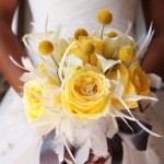 Continua il nostro viaggio attraverso i colori moda del 2013, oggi è la volta del giallo, il Lemon Zest secondo Pantone, colore solare ed estivo per eccellenza, perfetto per un matrimonio frizzante, magari realizzato in un bell’agriturismo in campagna. Avete mai pensato di potervi sposare con un abito giallo? Pensate che proprio io ho scelto questo colore nel lontano 1997 quando sono convolata a nozze. Abito stile vintage anni ’60, con piccoli grappoli di margherite stilizzate con pistillo giallo, girasoli come fiore protagonista e ricevimento in una location circondata da vigne in Toscana.