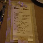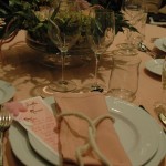 Sul tavolo del matrimonio tradizionale, si riscoprono le tradizioni, apparecchiando con pezzi classici, come per esempio la zuppiera Richard Ginori con bordi in oro. L’ispirazione è una bella cena di Natale dei nostri nonni. Per un matrimonio più informale, dove non ci sono posti assegnati, ma dove il tavolo è rigorosamente allestito e curato nei minimi particolari, si è seguito il trend tricot, con lana e feltro, con tema bicolore panna e rosa, per unt avolo morbido, come lo ha definito Carolina.