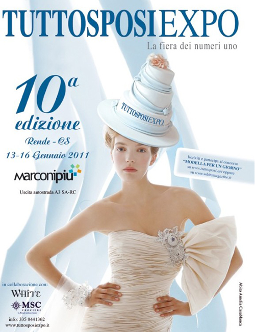 Udite udite: dal 13 al 16 gennaio 2011 si terrà in Calabria la decima edizione di Tuttosposiexpò-la fiera del tuo matrimonio. Molte le novità che caratterizzeranno questa edizione. La prima riguarda la location, che sarà il piazzale del Marconi Più la Galleria commerciale che si trova a Rende, di fronte l’uscita dell’autostrada SA-RC.
