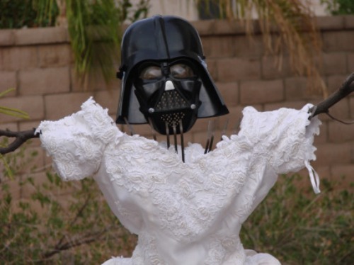 Quello che ne ha fatto lo vedete nella foto di apertura del post. Non si è tuttavia limitato a dare a sua moglie il volto del malvagio Darth Vader. Ha infatti creato una pagina web e dopo aver raccontato la sua storia, ha chiesto ai lettori di aiutarlo a compilare la lista dei 101 modi per riutilizzare l’abito di nozze delle ex mogli.